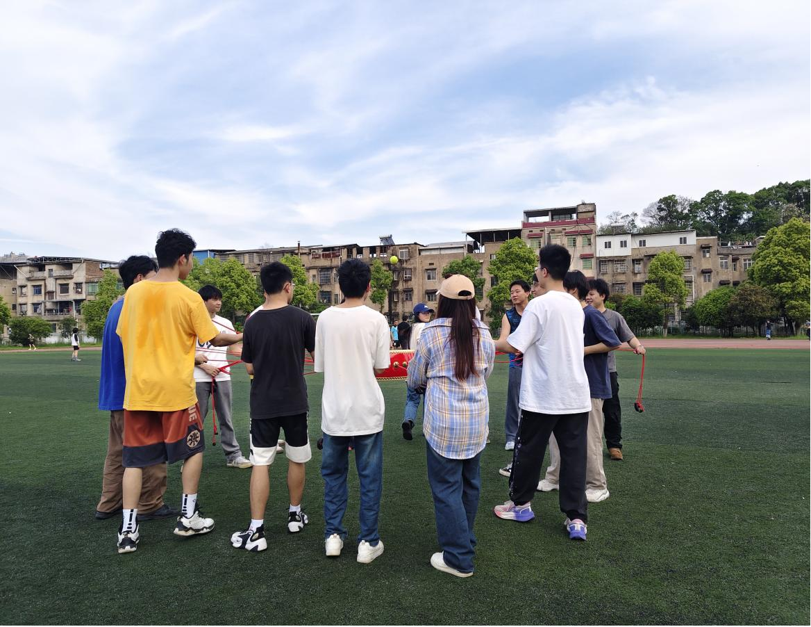 活动在轻松热烈的氛围中拉开帷幕。通过抽签分组后,先后进行了“喊名接沙包”“进击的石头剪刀布”“同心共振”等趣味团队游戏。大家在奔跑、跳跃与协作中释放焦虑情绪,拉近了彼此距离。同心鼓环节中,各小组默契配合、齐心协力控制网球不掉落,现场加油声不断。